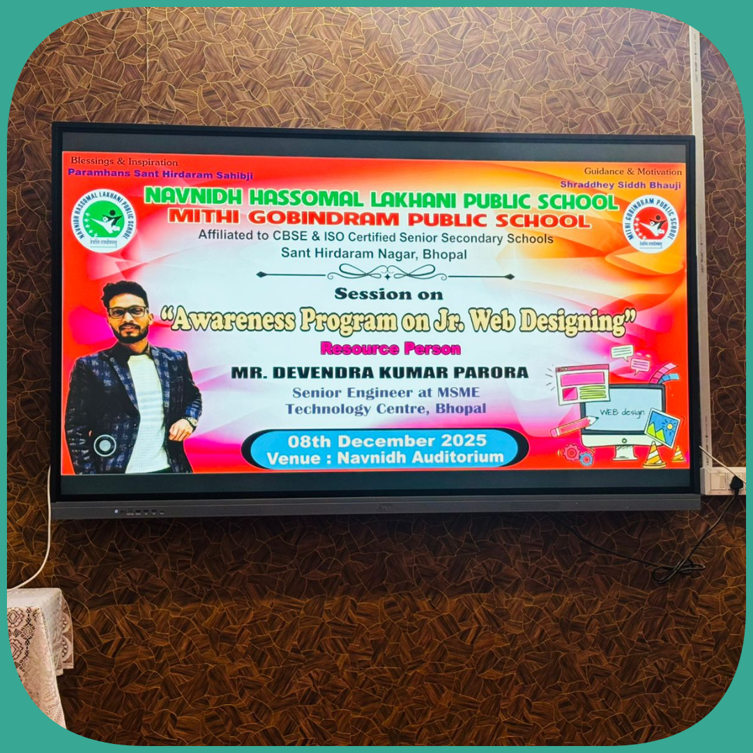 Navnidh Hassomal Lakhani Public School (NHLPS) and Mithi Gobindram Public School (MGPS) successfully organized an enlightening Awareness Session on Junior Web Designer for their students, in collaboration with MSME Technology Centre, a department under the Ministry of MSME, Government of India.