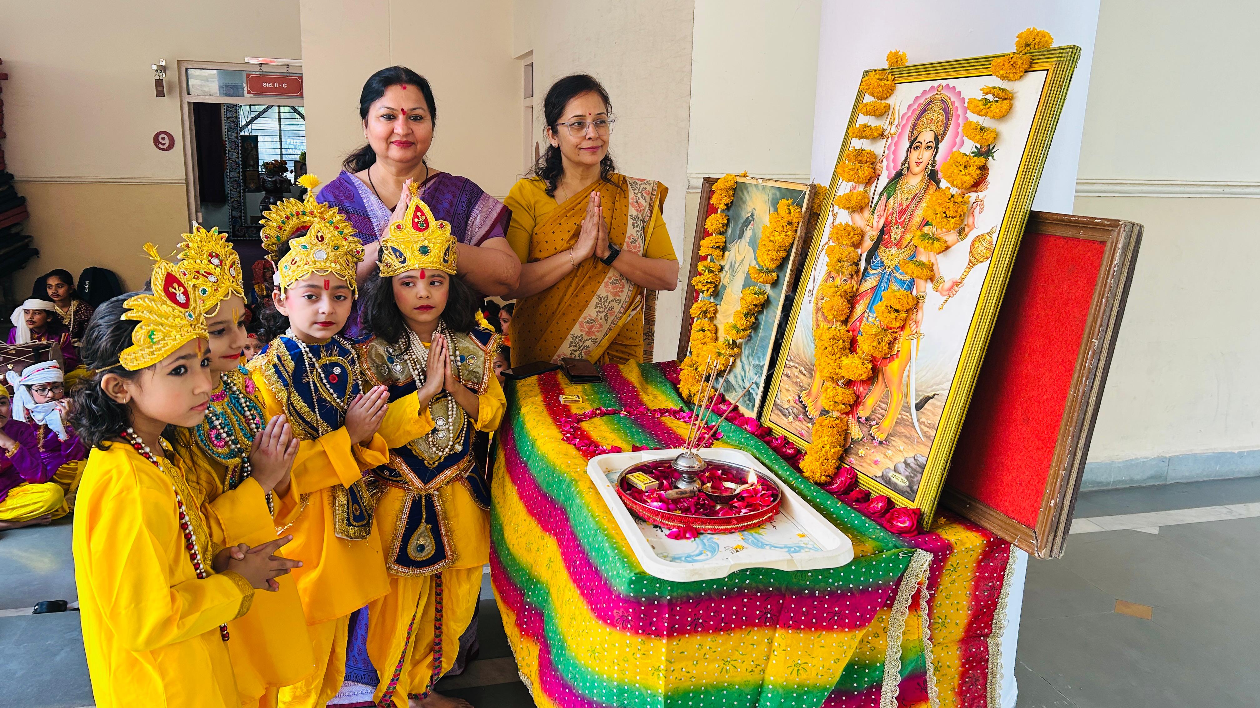 Navnidh Hassomal Lakhani Public School celebrated Ram Navami with devotion and cultural fervour. The event commenced with Deep Prajwalan by Principal, Amrita Motwani, Vice Principal, Rekha Kewlani and students, followed by the chanting of Vedic mantras and a soulful aarti that imbued the atmosphere with divine energy.