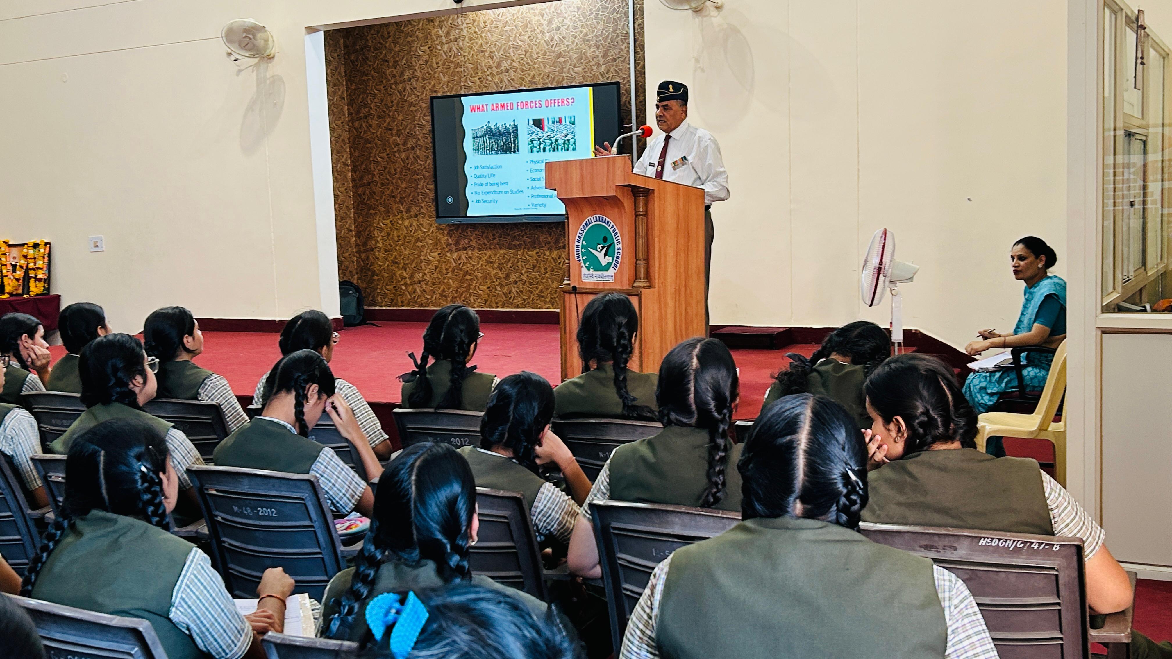 The event aimed to instill patriotism and guide students on career opportunities in the Indian Army, Navy, and Air Force. Col. Narayan Parvani, the keynote speaker, provided valuable insights into exams like NDA, CDS, and AFCAT, while emphasizing discipline, confidence, and leadership as key traits for aspirants.