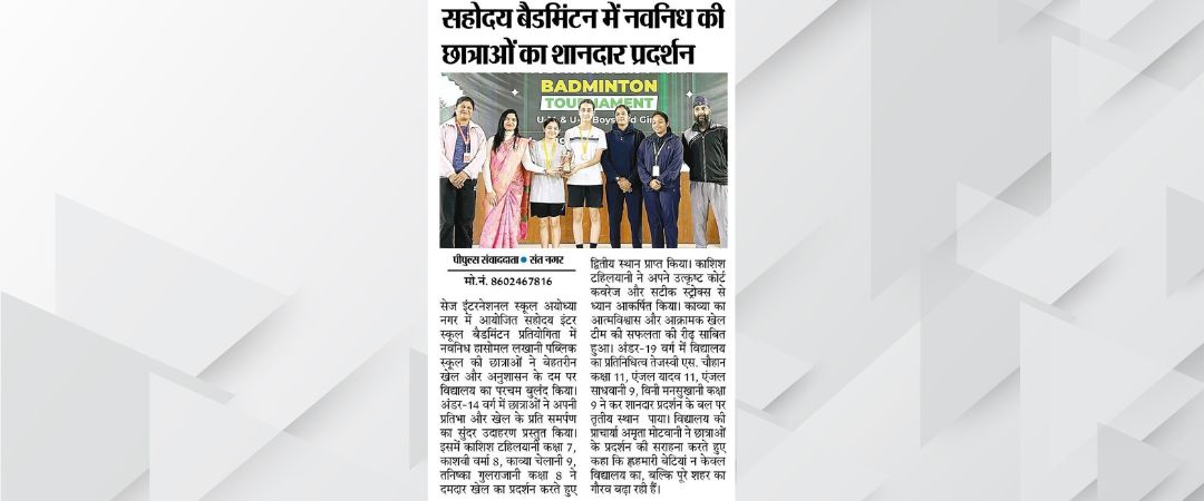 Navnidh Hassomal Lakhani Public School is proud to announce its outstanding performance at the Sahodaya Inter School Badminton Competition held on 19th November 2025 at Sage International School, Ayodhya Nagar, Bhopal.