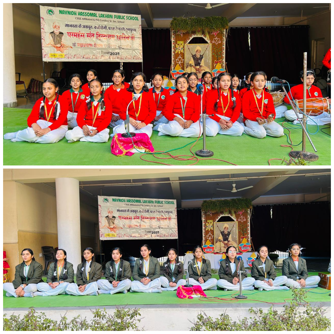Navnidh Hassomal Lakhani Public School (NHLPS), Sant Hirdaram Nagar, Bhopal, solemnly observed the Mahaprayan Diwas of Paramhans Sant Hirdaram Sahib Ji on 20th December 2025 in the august presence of Shree Ghanshyam Bulchandani Ji, Secretary, Shaheed Hemu Kalani Educational Society (SHKES), along with the Principal, Ms. Amrita Motwani; Vice Principal, Ms. Rekha Kewlani; academic coordinators and faculty members.