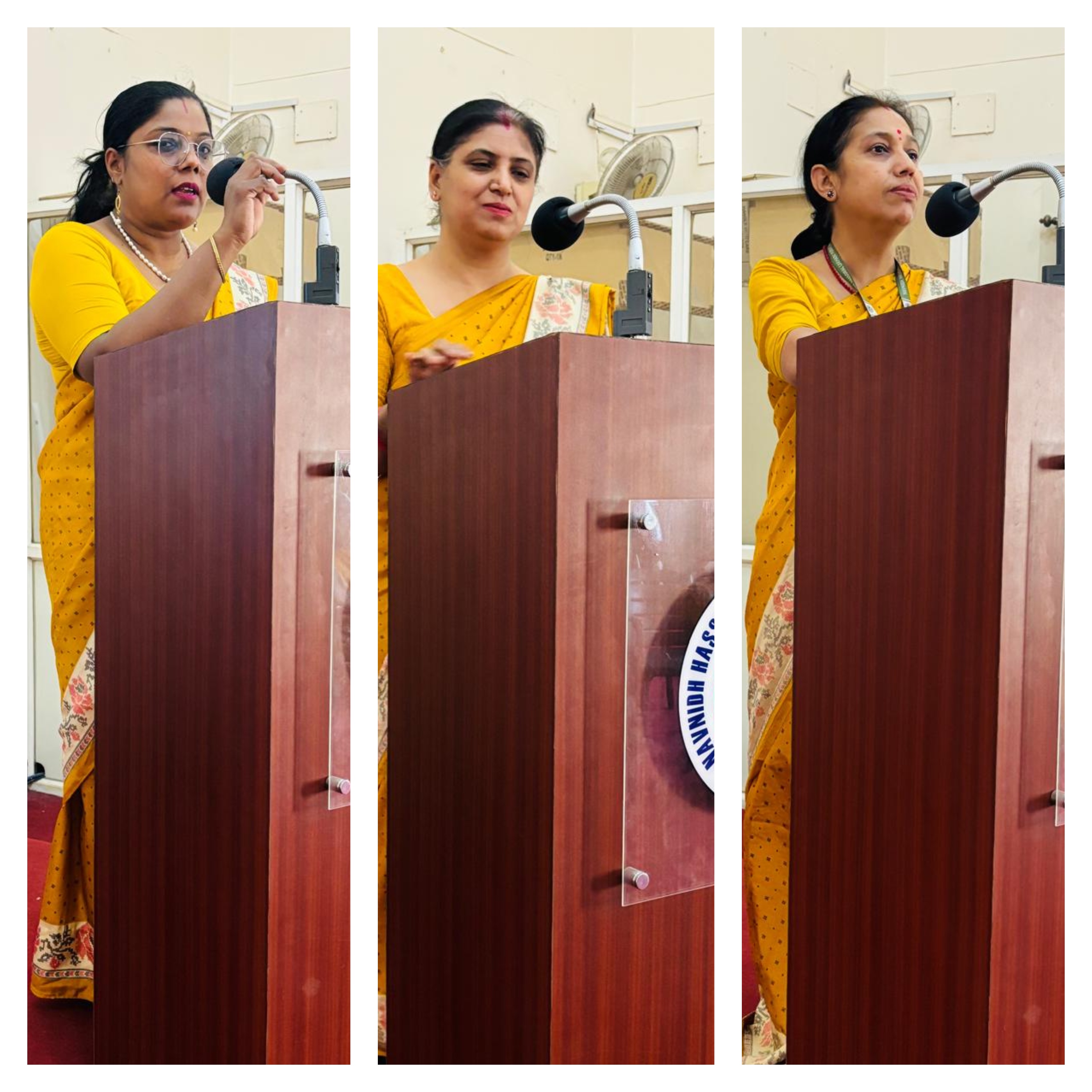 An orientation programme was conducted for the parents and students of Class IX to apprise them of the changes in the curriculum in alignment with NCF 2023 and NEP 2020. The session was graced by the Principal, Ms. Amrita Motwani, who emphasized the crucial role of parents in supporting students and strengthening the school-parent partnership for holistic development. Ms. Rini Sunil, Coordinator, further elaborated on the key modifications introduced across various subjects, highlighting the shift towards competency-based and experiential learning, while Ms. Neelam Raisinghani, Evaluation Incharge, provided clarity on the revised assessment patterns and evaluation criteria, including internal assessments and overall academic expectations. The session served as a meaningful platform to build understanding and foster collaboration between the school and parents for the academic success of students.