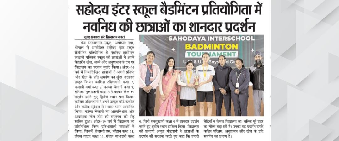 Navnidh Hassomal Lakhani Public School is proud to announce its outstanding performance at the Sahodaya Inter School Badminton Competition held on 19th November 2025 at Sage International School, Ayodhya Nagar, Bhopal.